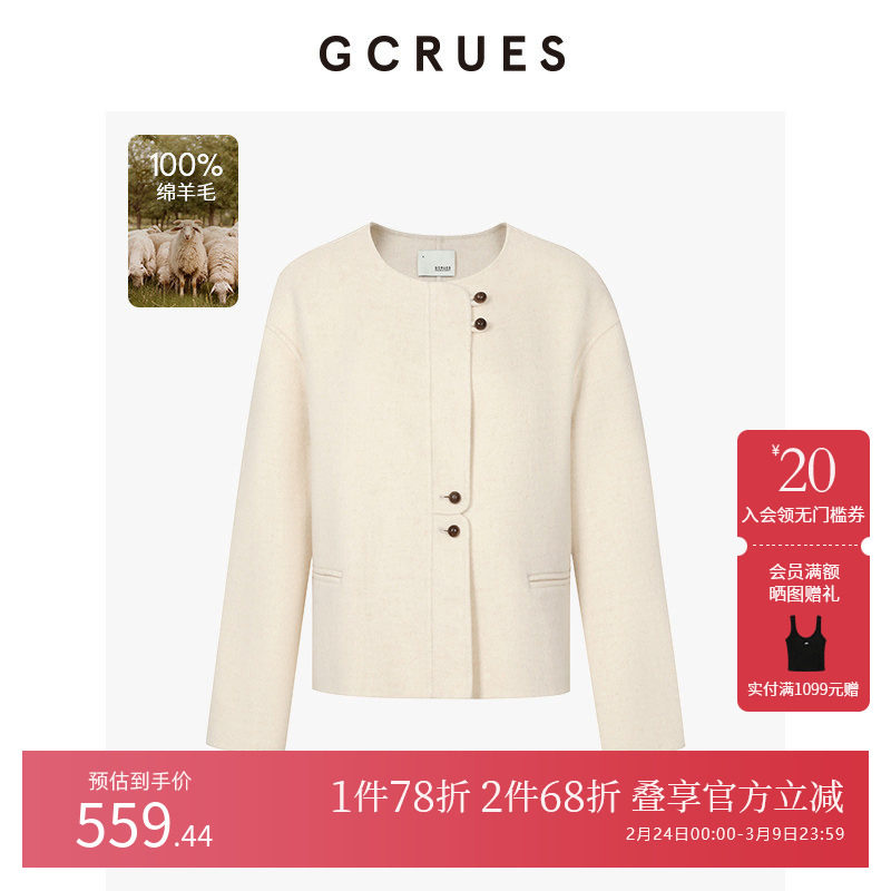 GCRUES商场同款小香毛呢外套女2025圆领短款双面呢 G09D12A2052