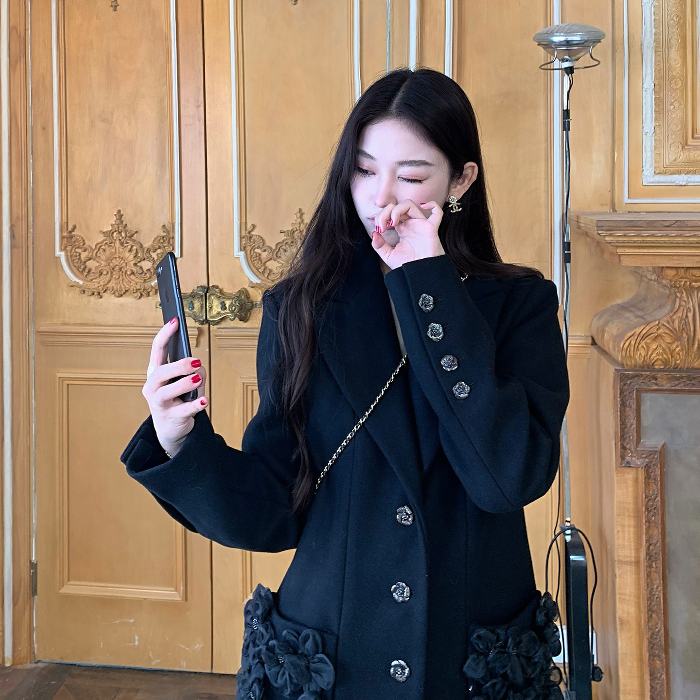 - 黑色呢大衣