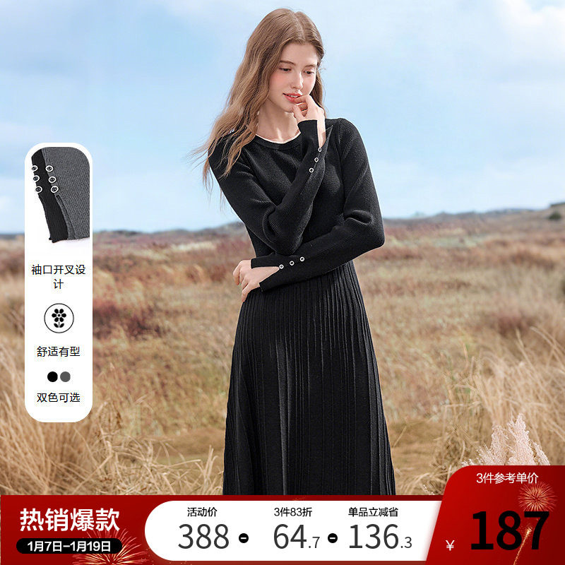 betu百图法式气质针织连衣裙2025年冬季新款加厚高腰修身毛衣裙
