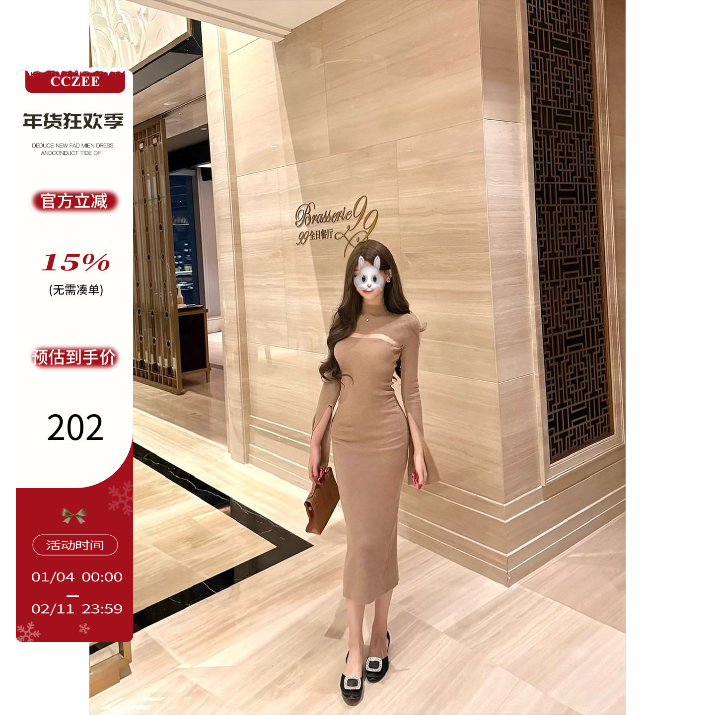 CCZEE 【月光恋人】针织连衣裙女秋冬高腰修身显瘦长款气质包臀裙