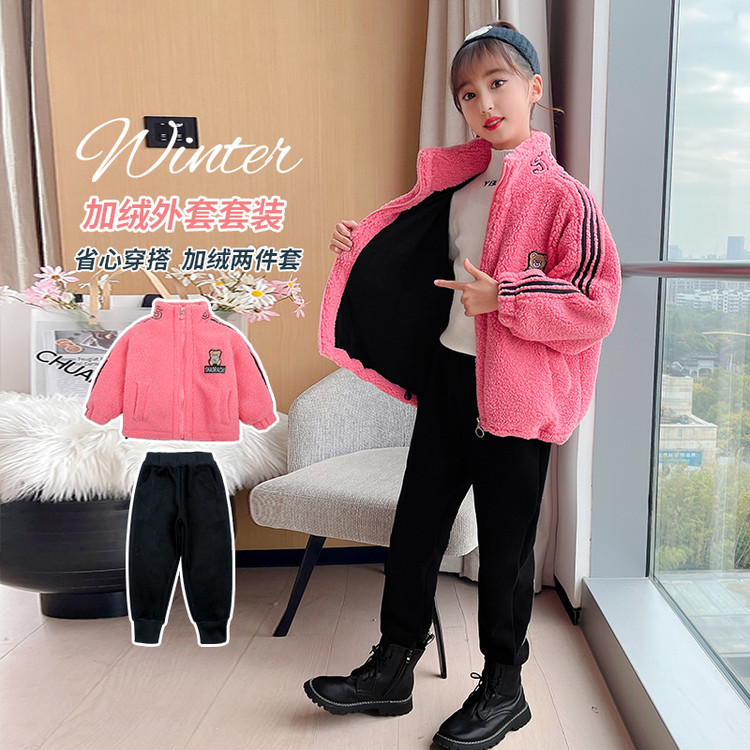 女童羊羔毛套装秋冬2025新款儿童加绒加厚冬装洋气时髦穿搭两件套