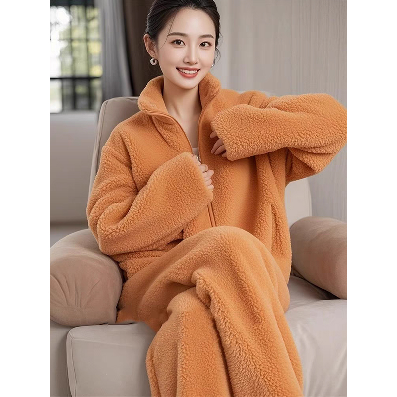 冬季保暖可外穿家居服套装内胆羊羔毛摇粒绒睡衣女冬2024新款外套