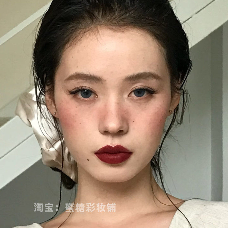 昭和歌姬 鸽血红唇雀斑妆 复古黑发红唇大红色暗红黑红色唇釉口红