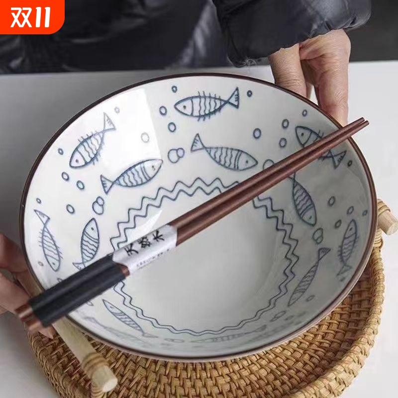 摩登主妇釉下彩面碗家用餐具泡面碗汤面碗个人专用斗笠碗吃拉面碗