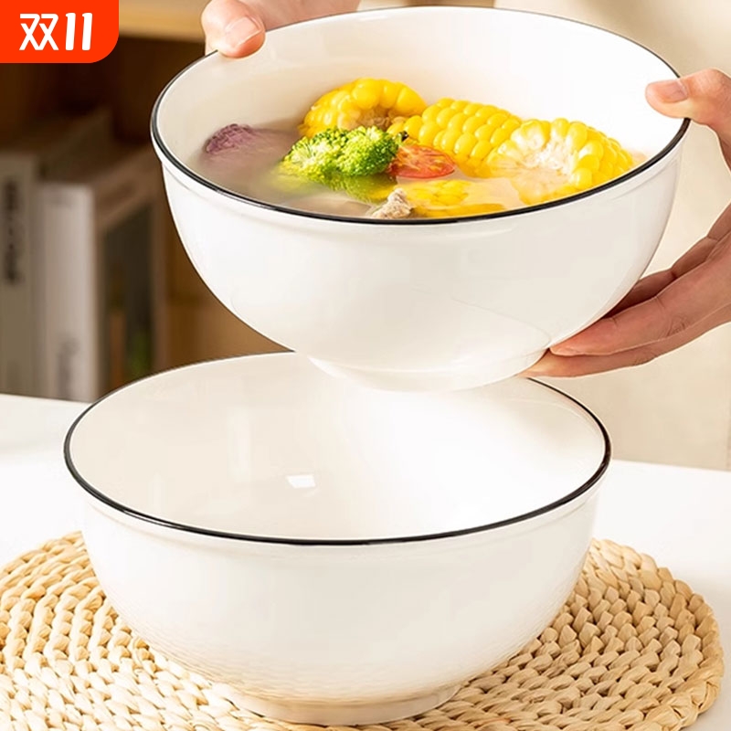 2个装家用9英寸加厚釉下彩陶瓷餐具大汤碗汤盆碗微波炉烤箱大容量
