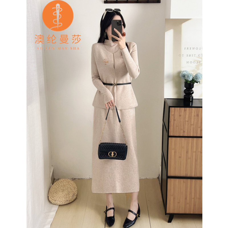 灰尘邓邓 韩式搭配一整套冬装女2025新款针织上衣半身裙高级套装