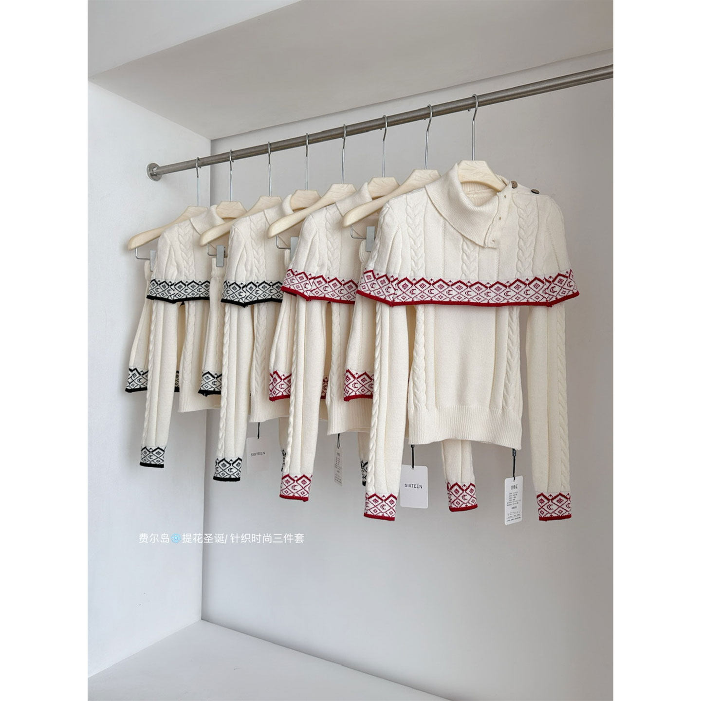 冬季费尔岛提花毛衣+针织半身裙+披肩巨好看冬装套装韩系三件套女
