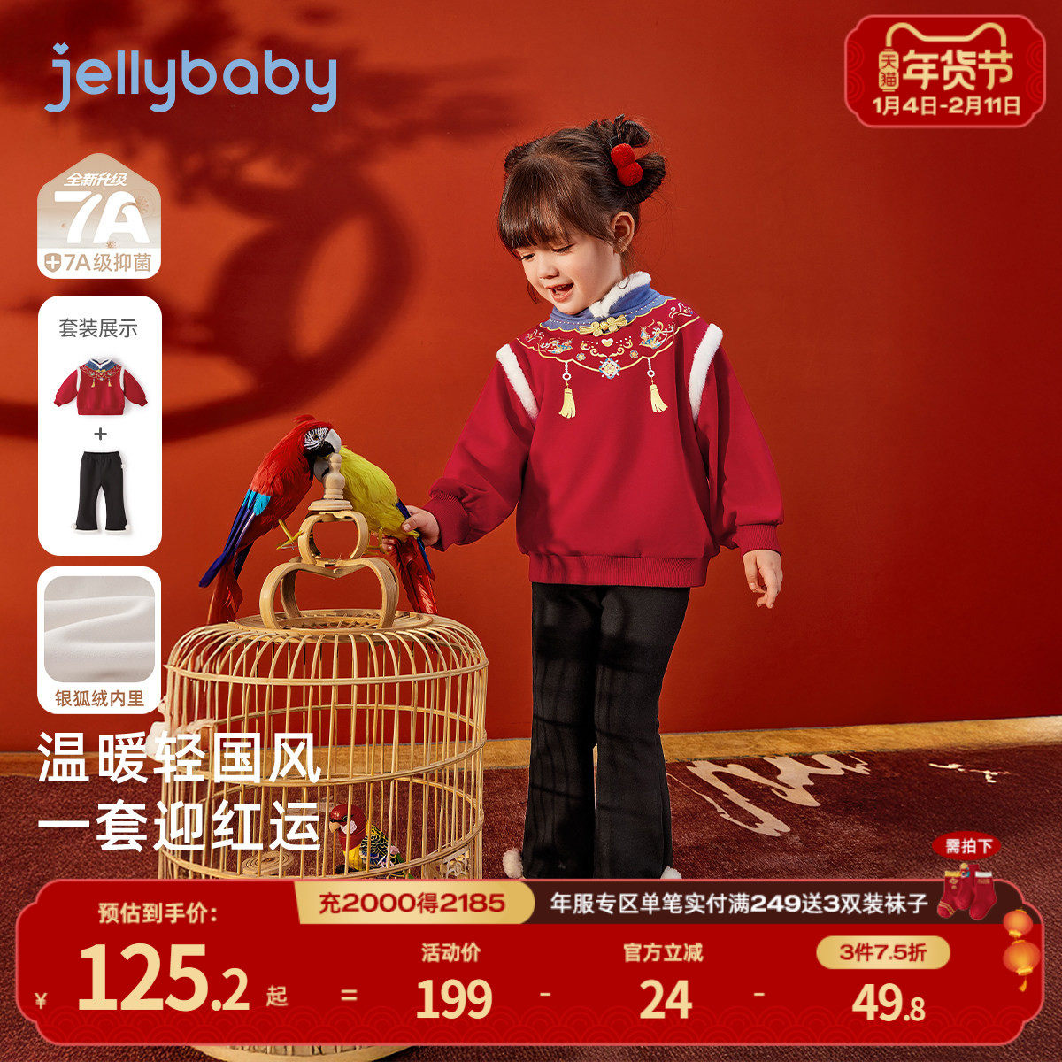 清仓【79.9元任选】jellybaby童装6女童冬装套装男童红色宝宝衣服