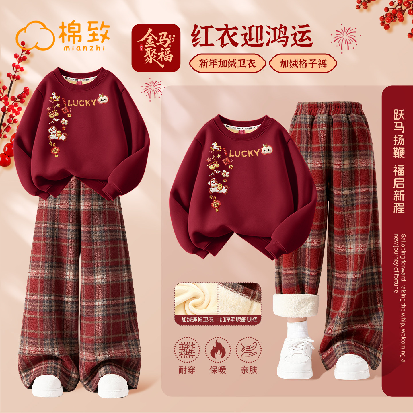 棉致女童冬装套装2026新年本命年过年服女孩衣服年服儿童红色卫衣