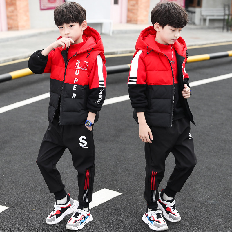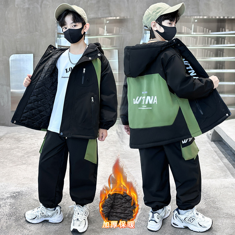 15岁男大童13秋冬装套装12韩版11洋气10加绒加厚三件套6男孩帅气8