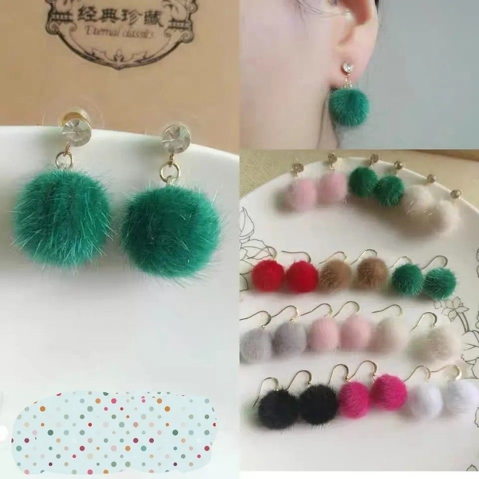 秋冬季水貂毛毛球耳环女2021年新款韩国气质网红毛绒耳坠耳钉耳饰