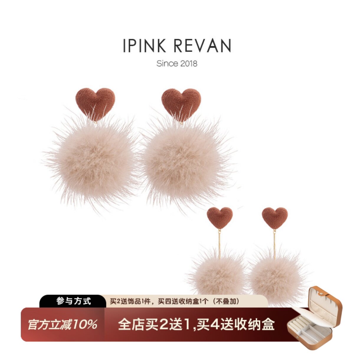 IPINK原创耳环水貂毛毛绒球毛球焦糖奶茶冬天耳钉耳夹无耳洞