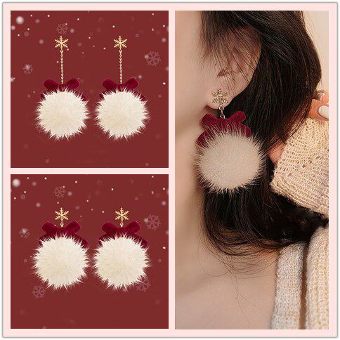【蜜桃茶】冬日恋歌 简约白色毛毛耳圈女秋冬气质网红圣诞耳环女