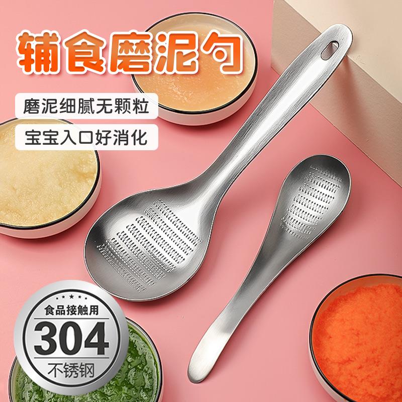 304不锈钢姜蓉姜汁研磨勺磨蒜蓉蒜泥勺子宝宝辅食研磨器蒜泥神器