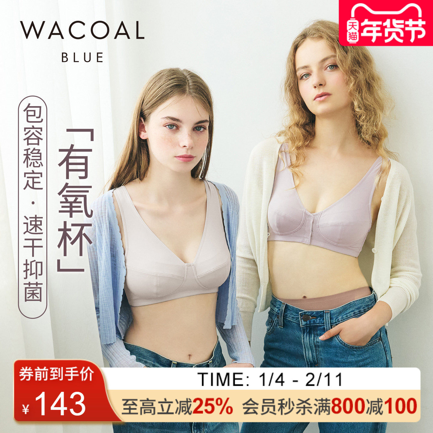 【有氧杯】华歌尔Wacoal前扣无钢圈舒适自然吸湿速干文胸内衣女