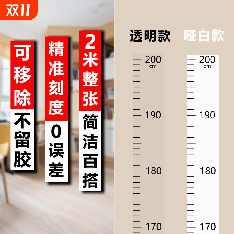 身高贴2米儿童量身高墙贴成人透明测量身高贴纸不伤墙家用可移除