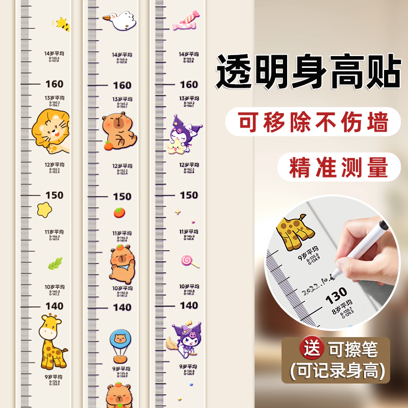 透明移除测量身高墙贴宝宝精准量身神器无损墙面儿童身高记录神器