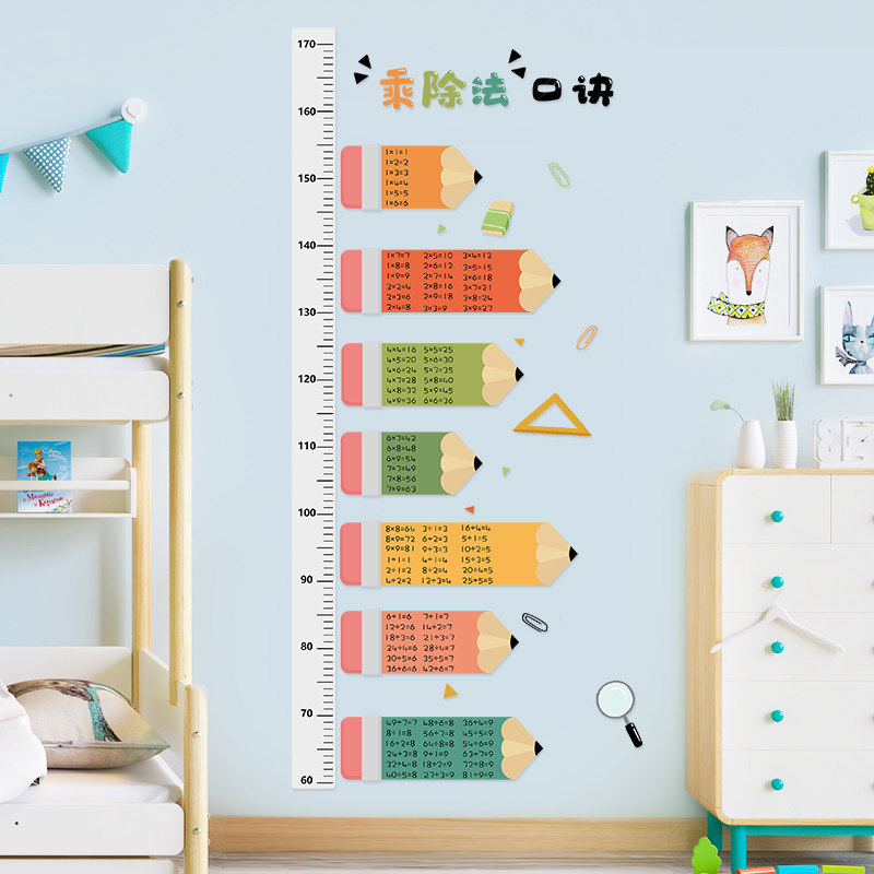 贴墙纸自粘墙画客厅贴画小学生乘法除法口诀表儿童量身高墙贴贴纸