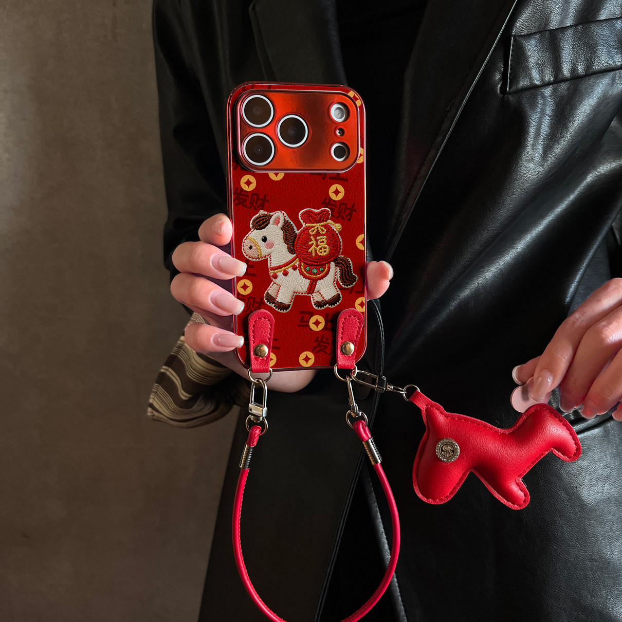 适用OPPOReno15Pro手机壳布纹木马红色新款findx9带挂绳x8s/x7ultra马年全包x6防摔硅胶女10/11pro12套13/14