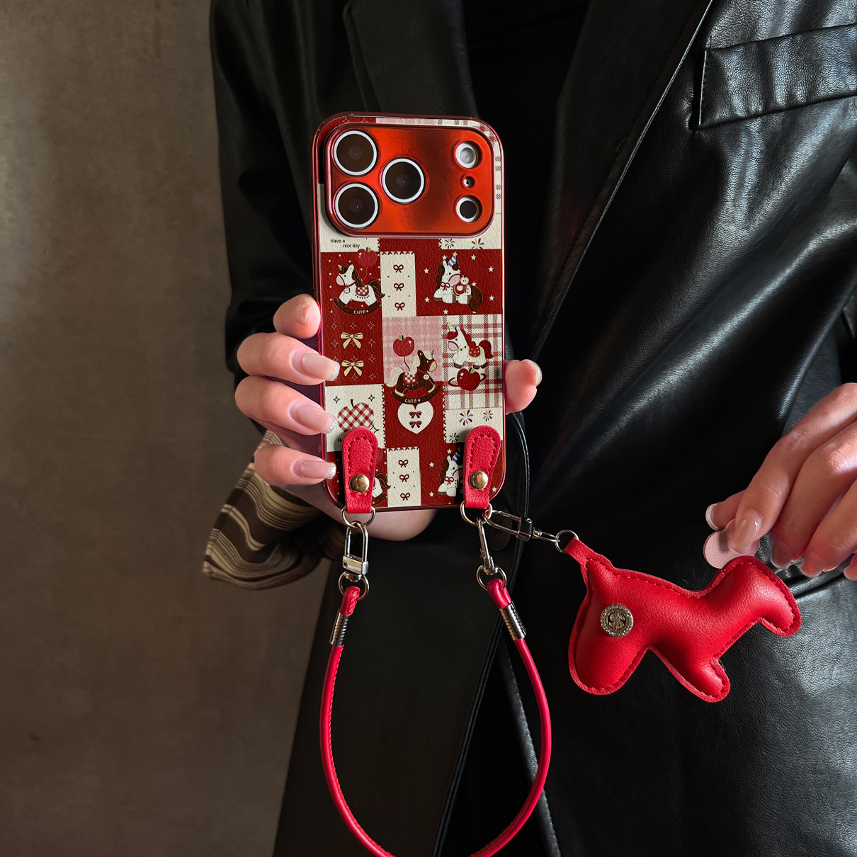 帅气小狗适用苹果16手机壳15pro新款女iPhone14proMAX全包8p防摔13mini硅胶xs挂绳7plus斜跨6s斜挎挂脖xr背带