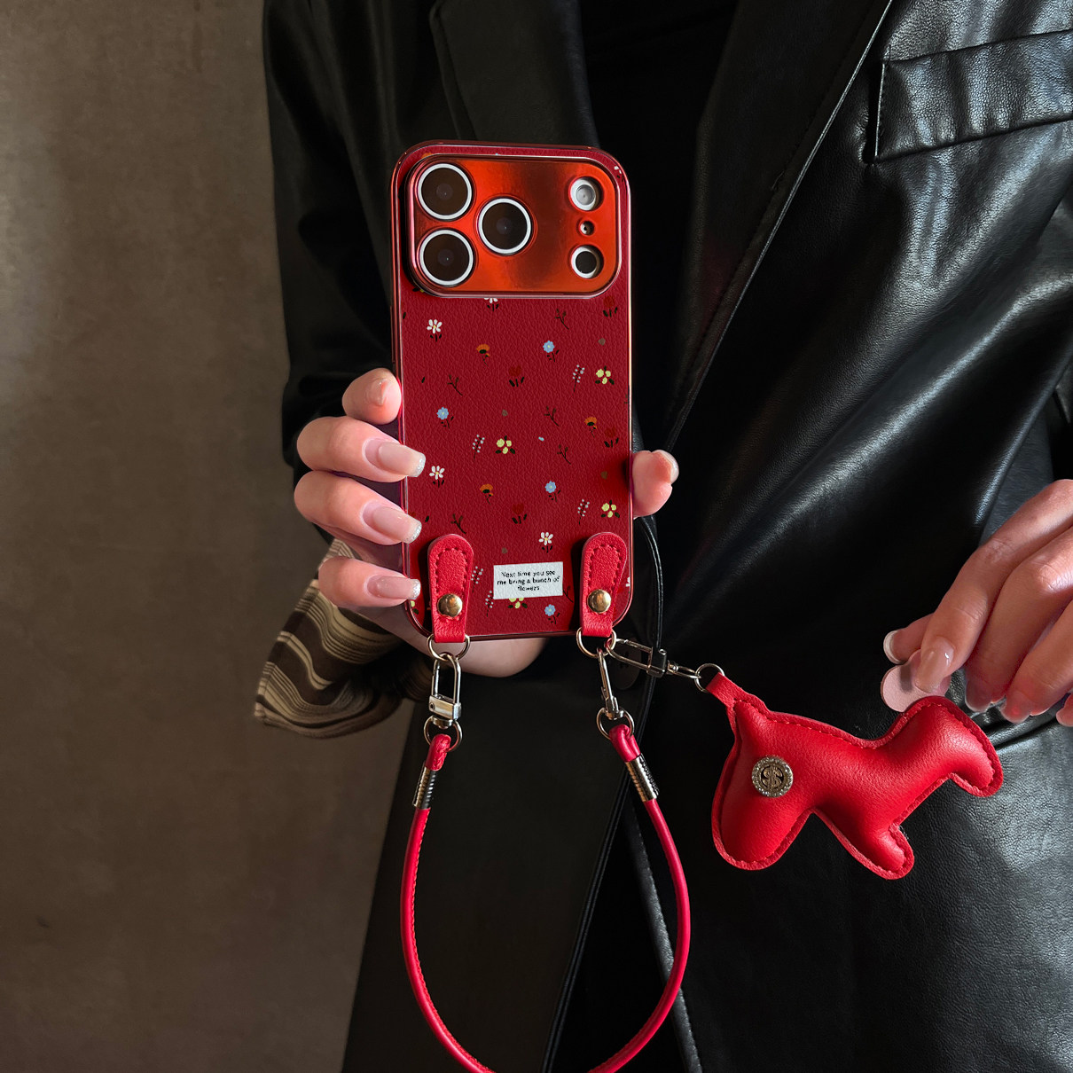 波点小马适用苹果8手机壳iPhone8plus保护套7小羊皮7plus带挂绳se3硅胶se2超薄6全包6s防摔6splus喜庆新款女