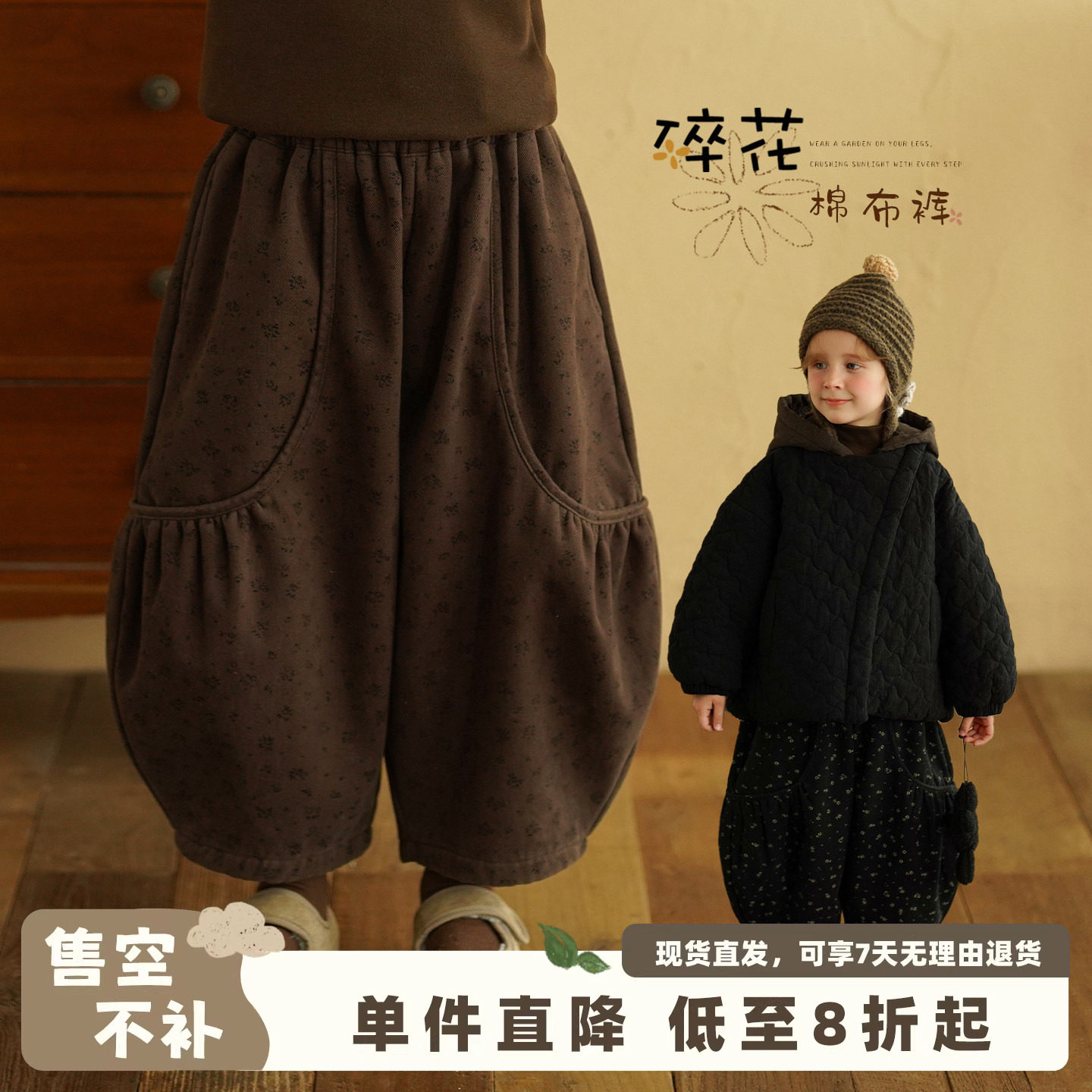 砚台家女童碎花灯笼裤2025冬季新款儿童加绒哈伦裤女宝保暖长裤子