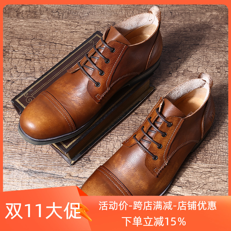 断码清仓秋冬季休闲高帮皮鞋男靴英伦男鞋真皮马丁靴男士皮靴潮流