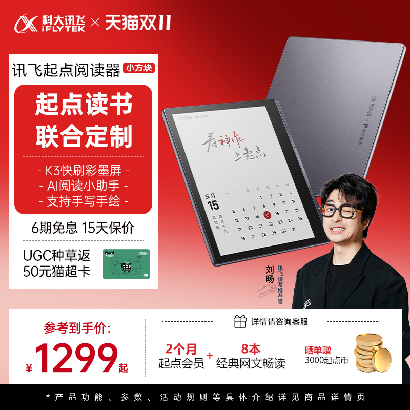 【新品首发】科大讯飞起点电子阅读器7英寸墨水屏小说漫画电子书阅览器护眼彩屏便携高清无痕读书官方旗舰店