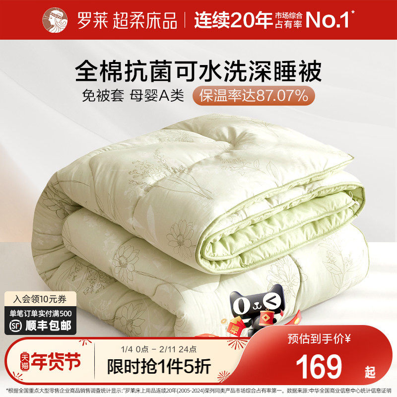 罗莱家纺全棉亲肤深睡被子被芯纯棉宿舍可机洗春秋被保暖加厚冬被