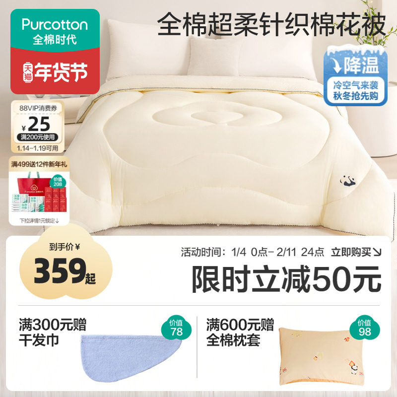 全棉时代被芯100%纯棉花被子加厚冬被秋冬保暖家用亲肤棉胎棉芯