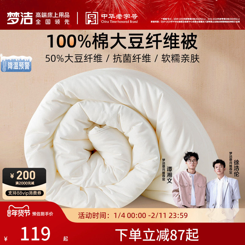 梦洁被子A类大豆纤维被春秋被抗菌冬被芯学生二合一子母夏被纯棉