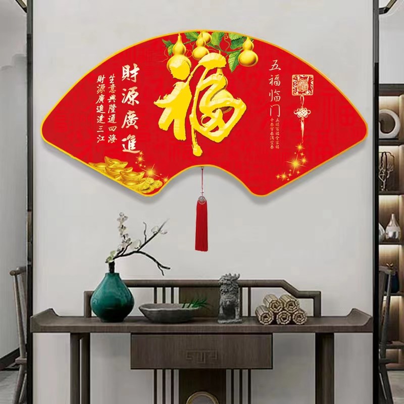 过年装饰福字挂画百福图电视墙装饰挂件新中式扇形中国风客厅装饰