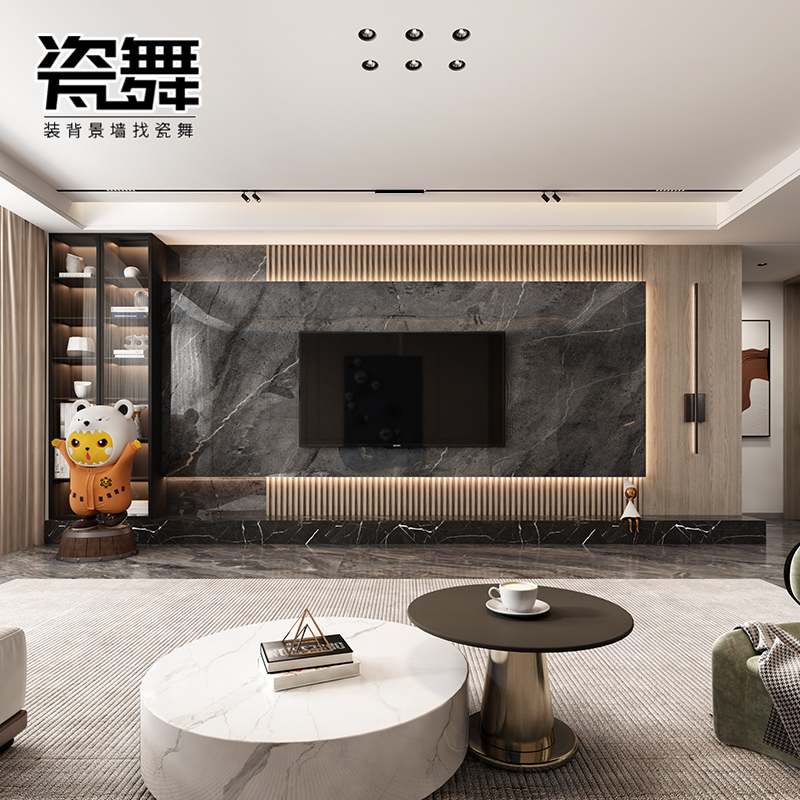 岩板大板电视背景墙现代简约轻奢客厅大理石瓷砖电视墙装饰影视墙