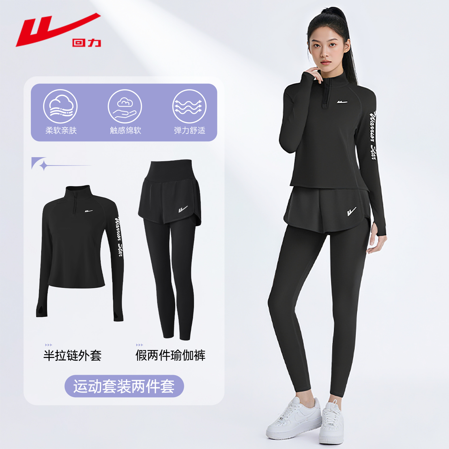 回力跑步运动套装女秋冬健身服半拉链外套专业训练晨跑瑜伽服套装