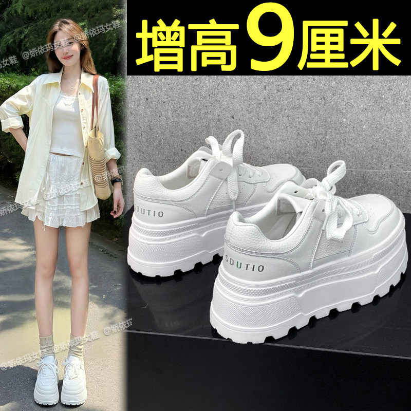 全真皮-内增高7CM小白鞋女2025新款秋季透气爆款百搭厚底松糕板鞋