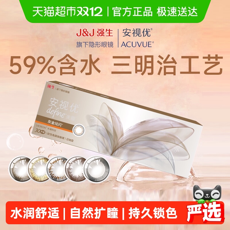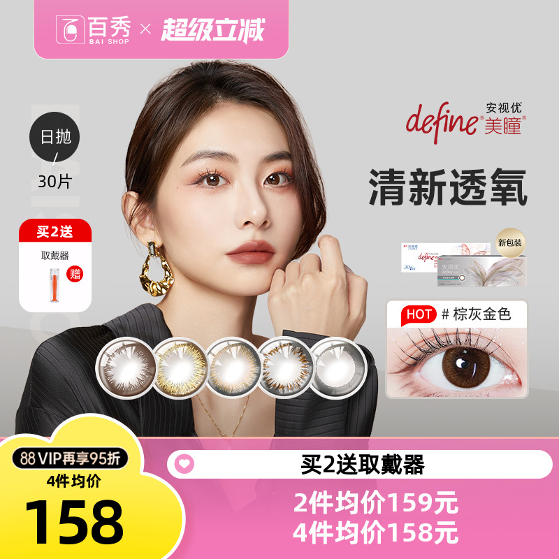 强生美瞳日抛盒30片装大小直径define自然绮遇安视优隐形眼镜官方