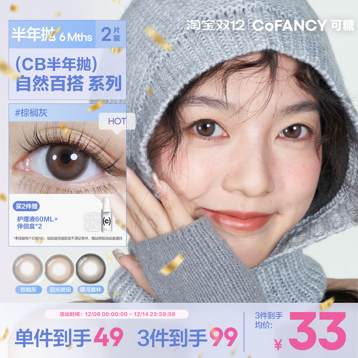 CB半年抛2片cofancy大小直径彩色隐形眼镜近视自然三明治美瞳学生