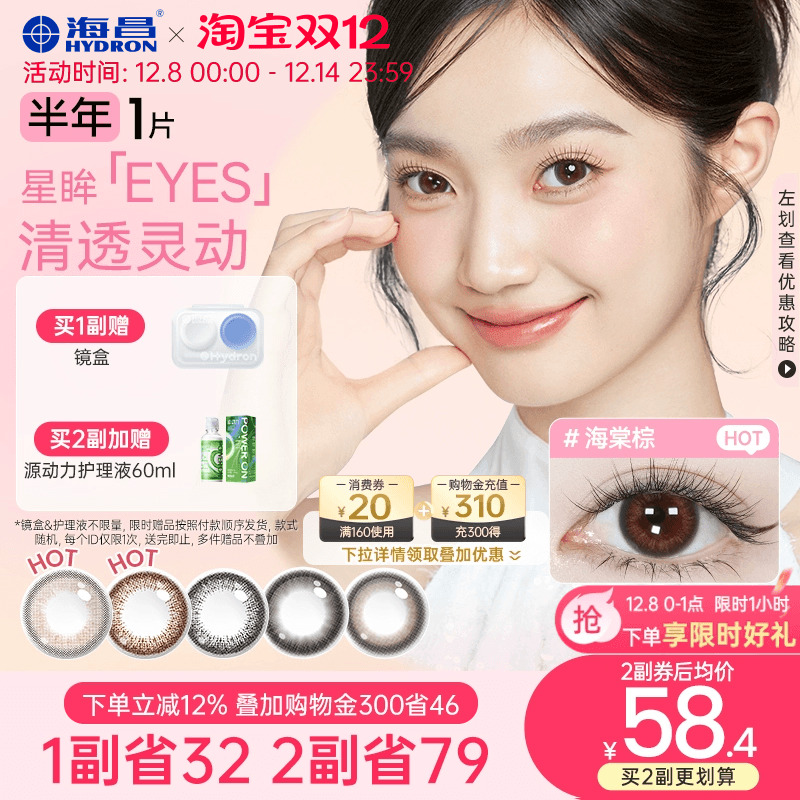 海昌美瞳星眸半年抛1片女带度数自然近视隐形眼镜小直径棕水凝胶