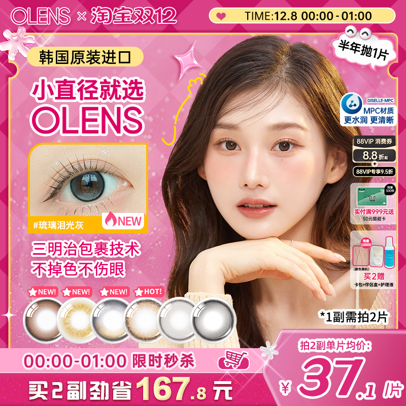 【淘宝秒杀】OLENS日抛美瞳4片新客体验装自然混血小直径隐形眼镜