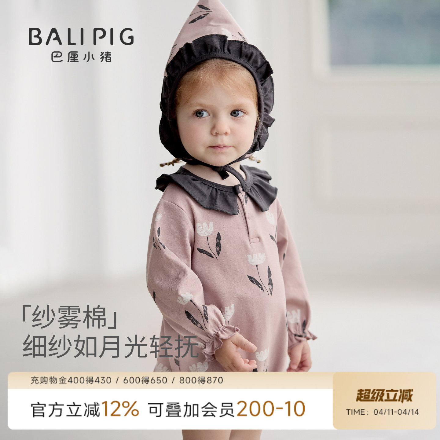 婴儿春装女宝宝连体衣服纯棉外出服薄棉衣哈衣爬服外穿洋气春秋冬