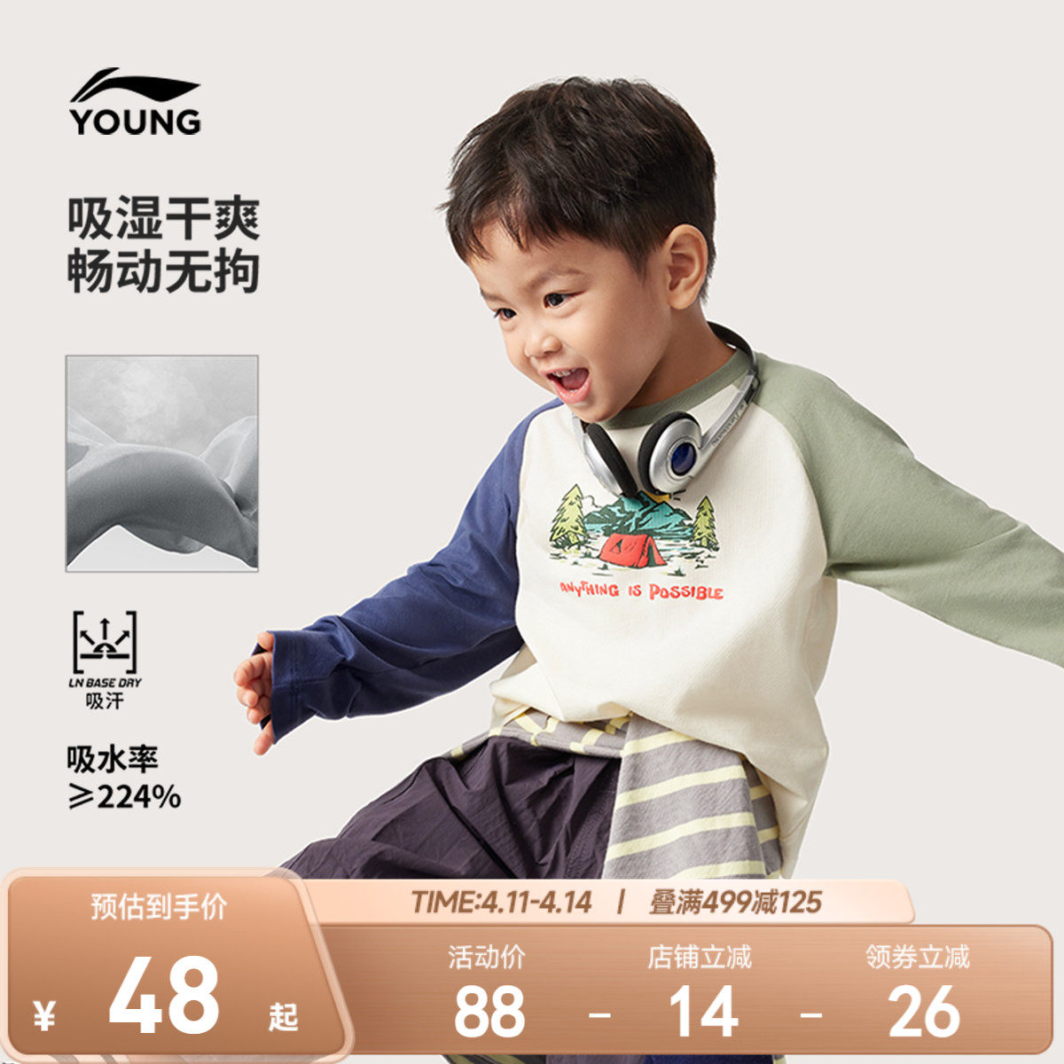 李宁小童长袖T恤速干衣男孩上衣男童装女宝宝春夏款春季春装衣服