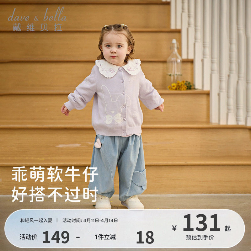 戴维贝拉儿童牛仔裤2026女童新款童装女宝宝裤子春装哈伦裤春季