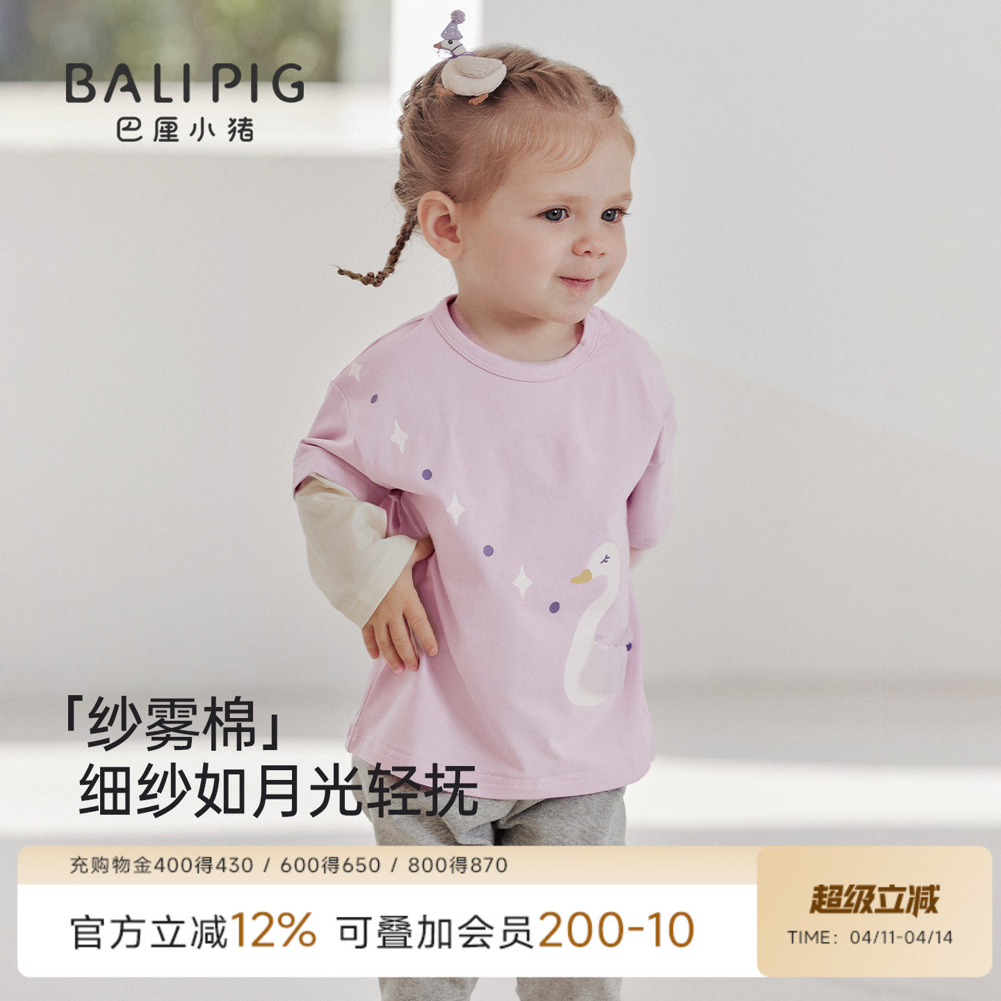 小O爸女婴童 女宝宝t恤假两件2026春装婴儿卡通可爱星星长袖上衣