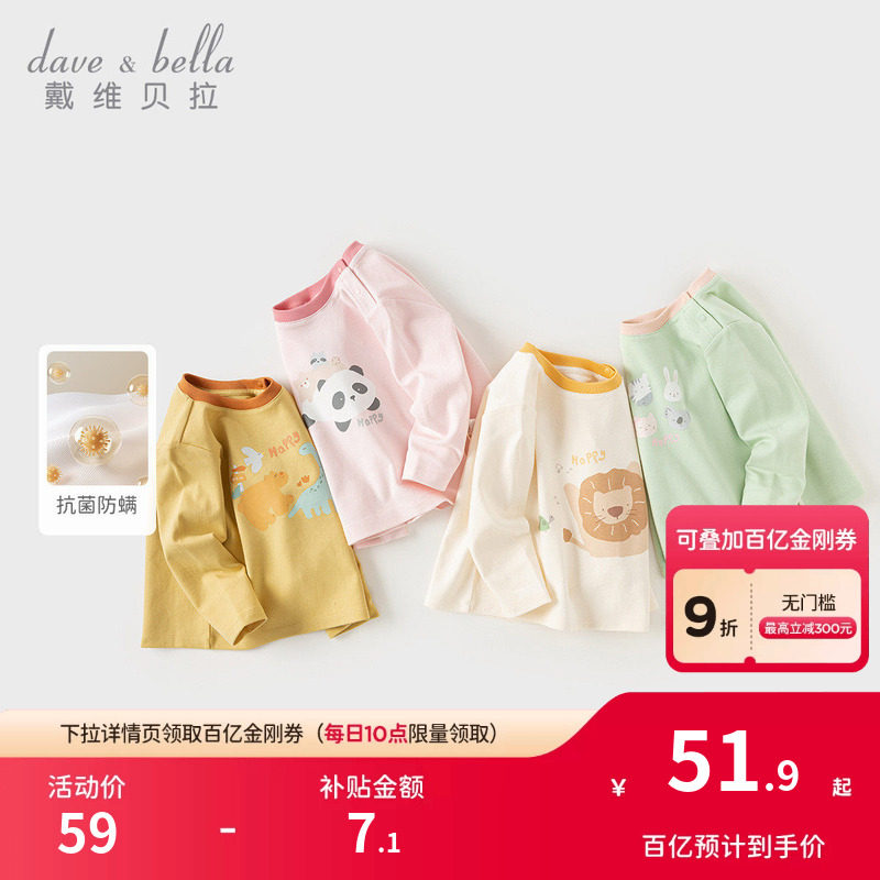 戴维贝拉儿童长袖T恤2026男童春装打底衫女宝宝新款纯棉上衣A类