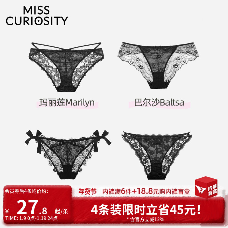 3条98元好奇蜜斯蕾丝女法式性感纯欲低腰三角内裤纯棉抗菌裆绑带