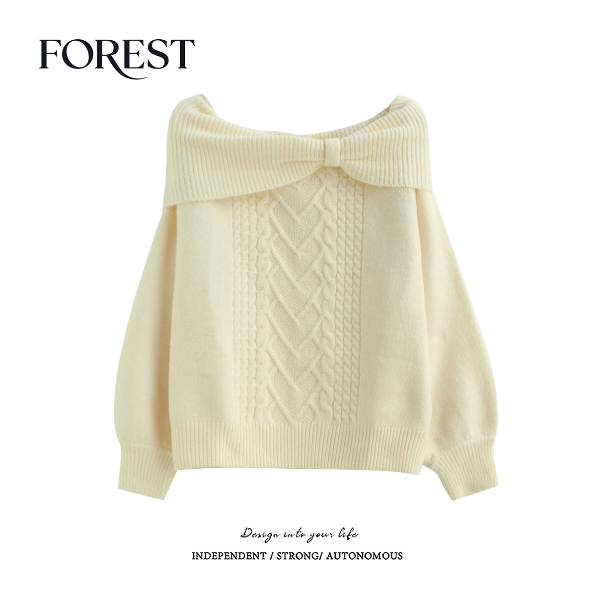 时髦一字领套头蝙蝠衫毛衣外套女秋季新款韩版宽松灯笼袖针织上衣