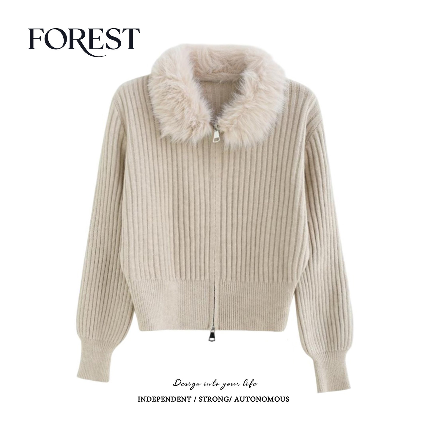 早秋韩版小众设计灯笼袖毛毛上衣女 慵懒风毛衣宽松洋气流苏上衣
