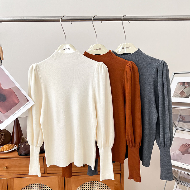 秋季半高领羊毛衫长袖毛衣女灯笼长袖宽松韩版非羊绒针织打底上衣