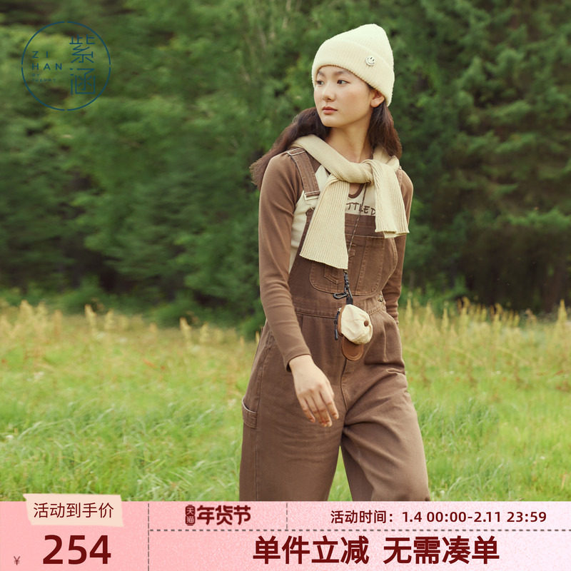 紫涵复古牛仔背带裤女秋季新款休闲宽松显瘦小个子纯棉连体直筒裤