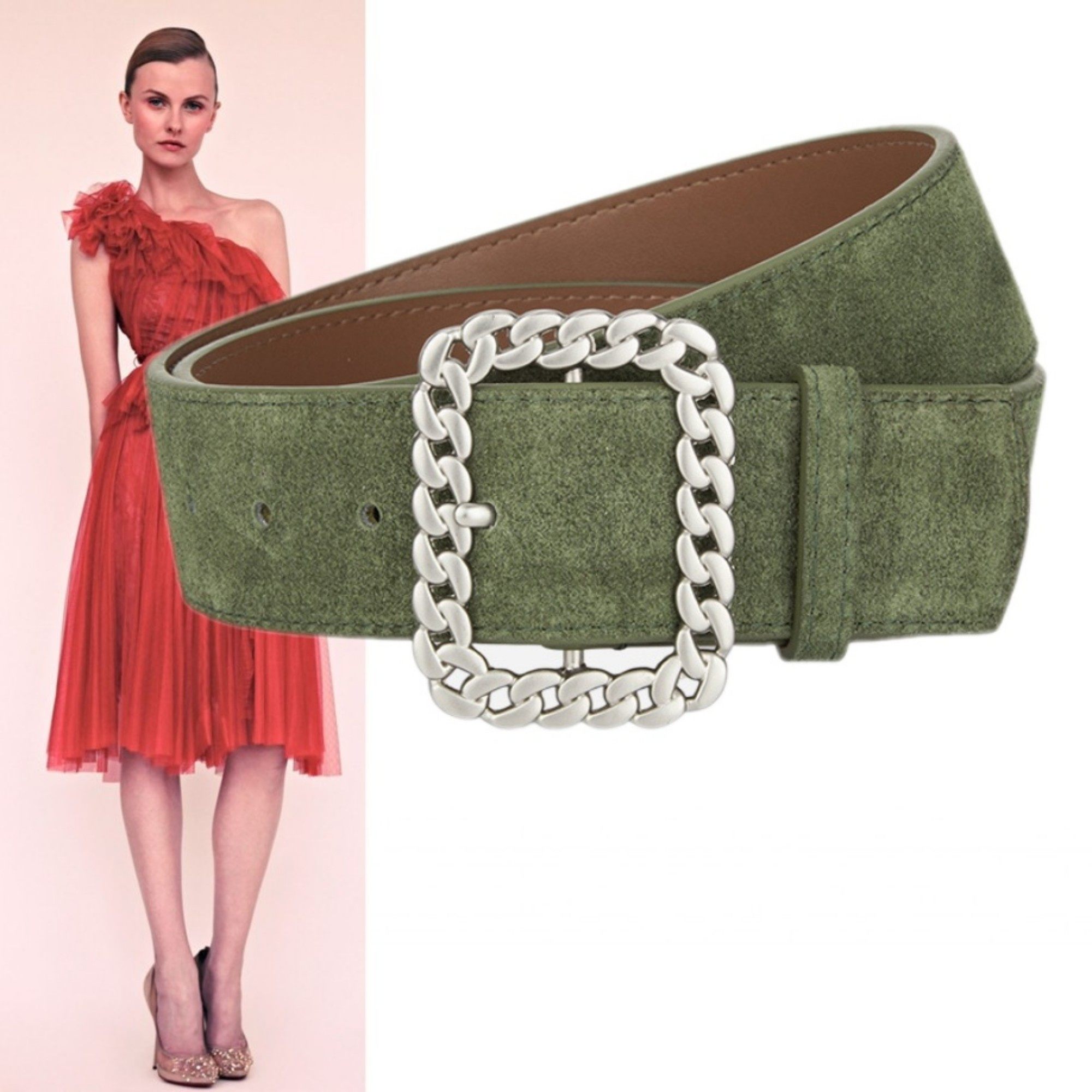 军绿色磨砂牛皮4.3厘米皮带前卫女风衣羽绒服呢子大衣装饰宽腰带
